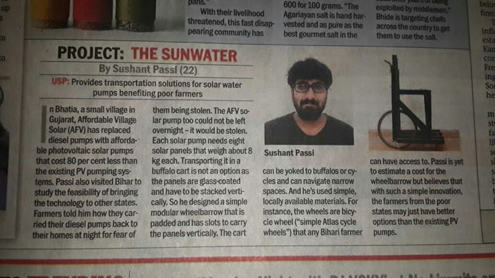 The SunWater project is an ongoing product, system and business project being led by Dr Paul Polak and Affordable Village Solar, Inc. The objective of The SunWater project is to use solar power and drip irrigation at the lowest possible cost to improve crop production and provide agronomical/market advice for off season cash crops, to fetch better revenue for small scale farmers. Currently the project is located in West Gujarat, the Little Rann of Kutch and potentially in East Indian states like Bihar and Uttar Pradesh. The project targets small scale (1 Hectare plot) farmers across India, and requires a comprehensive business model strategy, an effective product/system and a strong brand to be successful. My role in this project was to perform a baseline, field and validation research in East and West India to theorize a business model, and to propose a production and distribution strategy. Furthermore, I analysed the design of the current Solar Irrigation system in place and proposed and developed various product design interventions in the field of portability, security and optimization to add value to the project. I also developed and theorized a brand identity for the project.